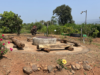 Pali Food Forest (PFF) is situated between two fast-running cities Mumbai and Pune, 100KM closer to Mumbai & 120KM to Pune in the valley of historical Sudhagad Fort and Sarasgad Fort. Famous Ballaleshwar Ganapati Temple is closer to 7.5Km from the farm. The farm has more than 1000 plants of cashew nuts, mango,chikoo, banana, lemon, papaya, neem, Jamun, bamboo, Ashoka, Mahuwa, etc.