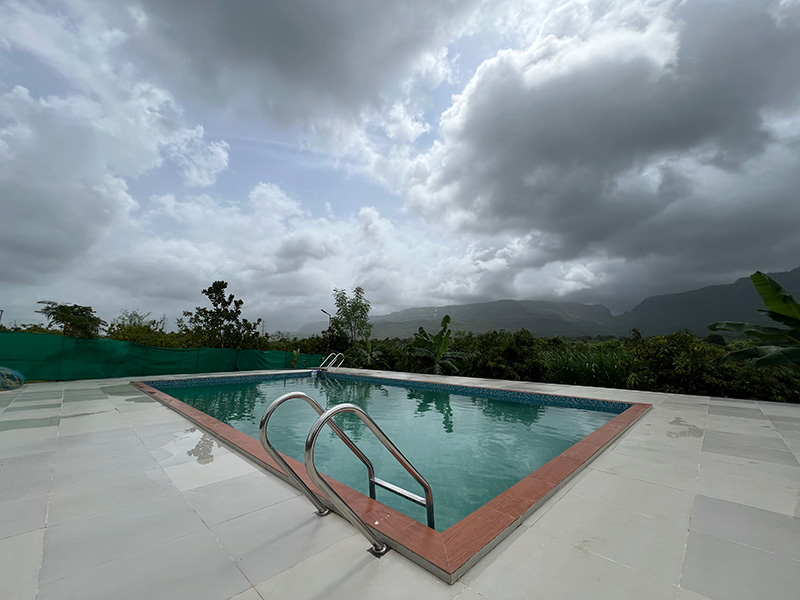 The farm is spread approx 10 acres of land which has a natural stream of water, a well, and a beautiful temple of Lord Ganesha and Sainath. Also farm has swimming pool, bonfire pit, natural place for meditation, training hall indoor and outdoor.